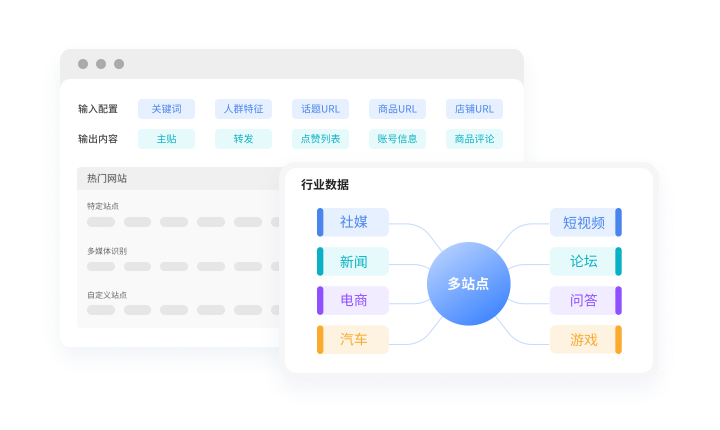 覆盖90%+互联网公开数据,基于不同业务场景提供海量数据源,为业务实施提供基础数据保障,降低企业多平台数据监测成本