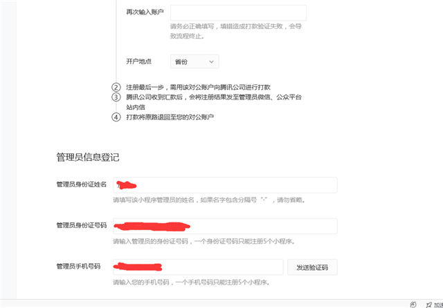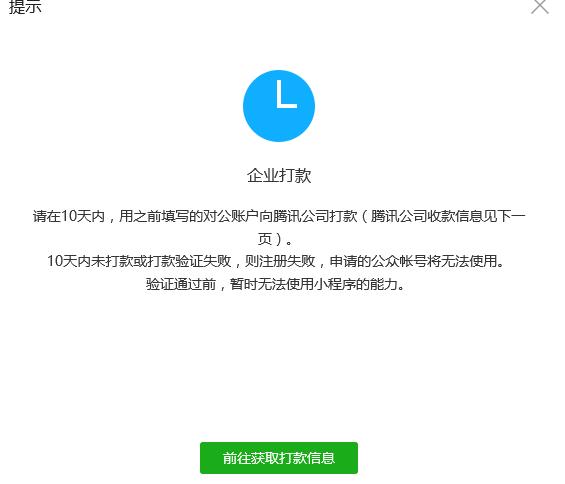 6、打款验证成功后即可跳转到小程序登陆成功页面。然后完善小程序基本信息,包括名称、头像、介绍及服务范围等。